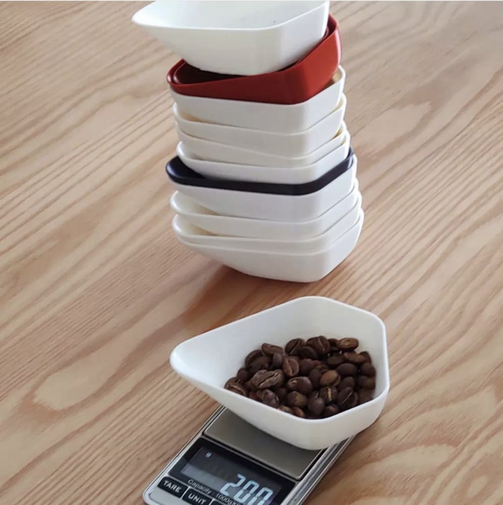 صحن من براند لايلي دريب الأصلي مصنوع من البولي بروبلين ضد الكسر ابيض مع فوهة تسهل استخدامه مع المطاحن beans dosing tray